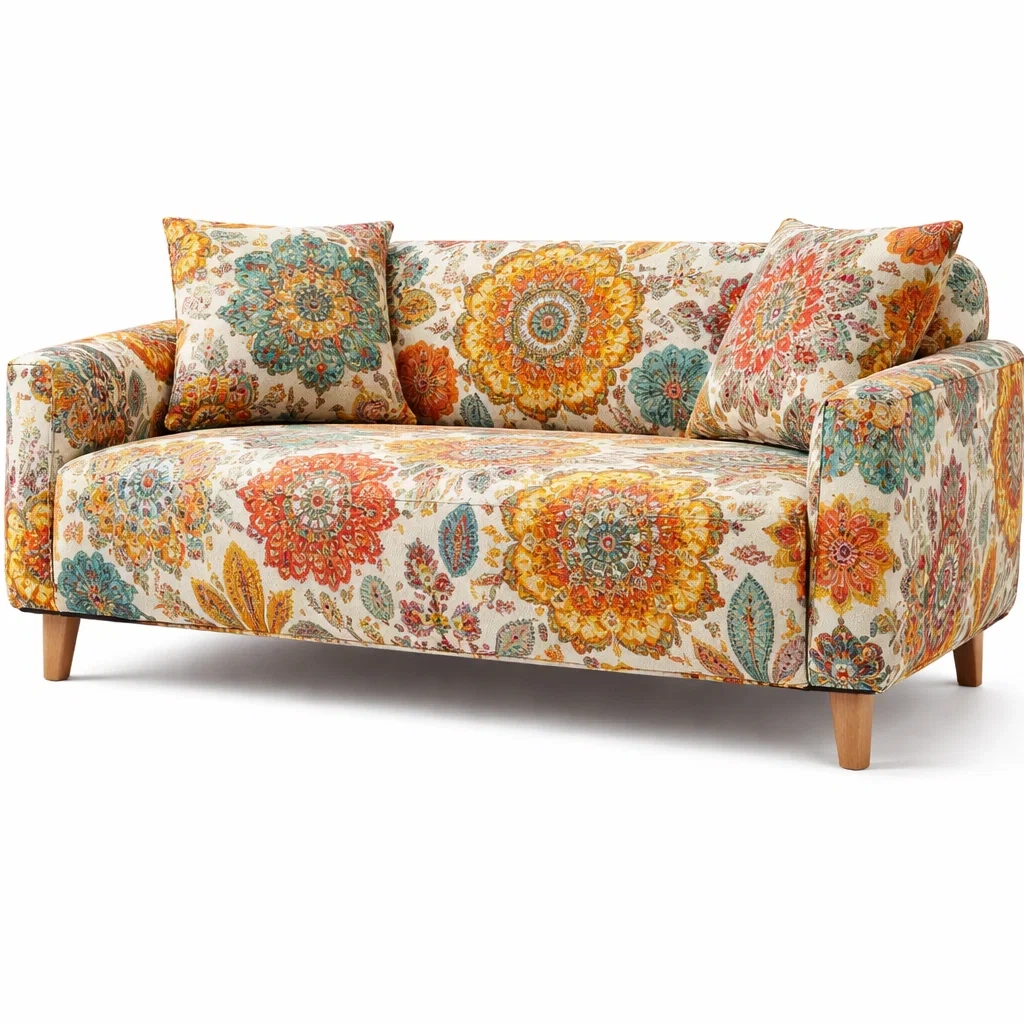 Descripcion:Sofa decorativo con estampado floral bohemio y colores vivos. Proporciona gran comodidad y durabilidad. Perfecto para salas acogedoras y ambientes artisticos.